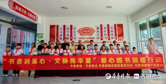 9 月 9 日下午,“书香润童心文脉传华夏” 爱心图书捐赠活动在济南市商河县孙集镇牛堡小学温情启幕。本次活动由齐鲁晚报齐鲁壹点、壹点公益联合贝视清健康产业集团共同发起,为该校送去 2000 册中国传统文化图书,以实际行动助力青少年读书行动与健康成长。