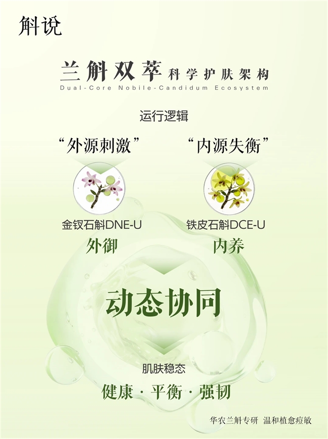 2026年初,当多数国内护肤品牌仍在“成分浓度”与“配方复配”的赛道上激烈角逐时,诞生于华南农业大学的石斛功效护肤品牌斛说迈出了更具战略意义的一步——正式发布品牌首套石斛科学护肤架构「兰斛双萃」DNCE(Dual-Core Nobile-Candidum Ecosystem)。这一动作不仅标志着斛说自身科研体系的成型,更可能预示着国产植物功效护肤从“单品竞争”向“系统竞争”的关键转型。