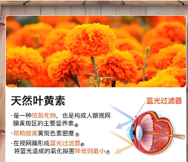 单一高含量叶黄素效果有限,需遵循5:1黄金配比(叶黄素:玉米黄质=10mg:2mg)才能发挥最佳效果。