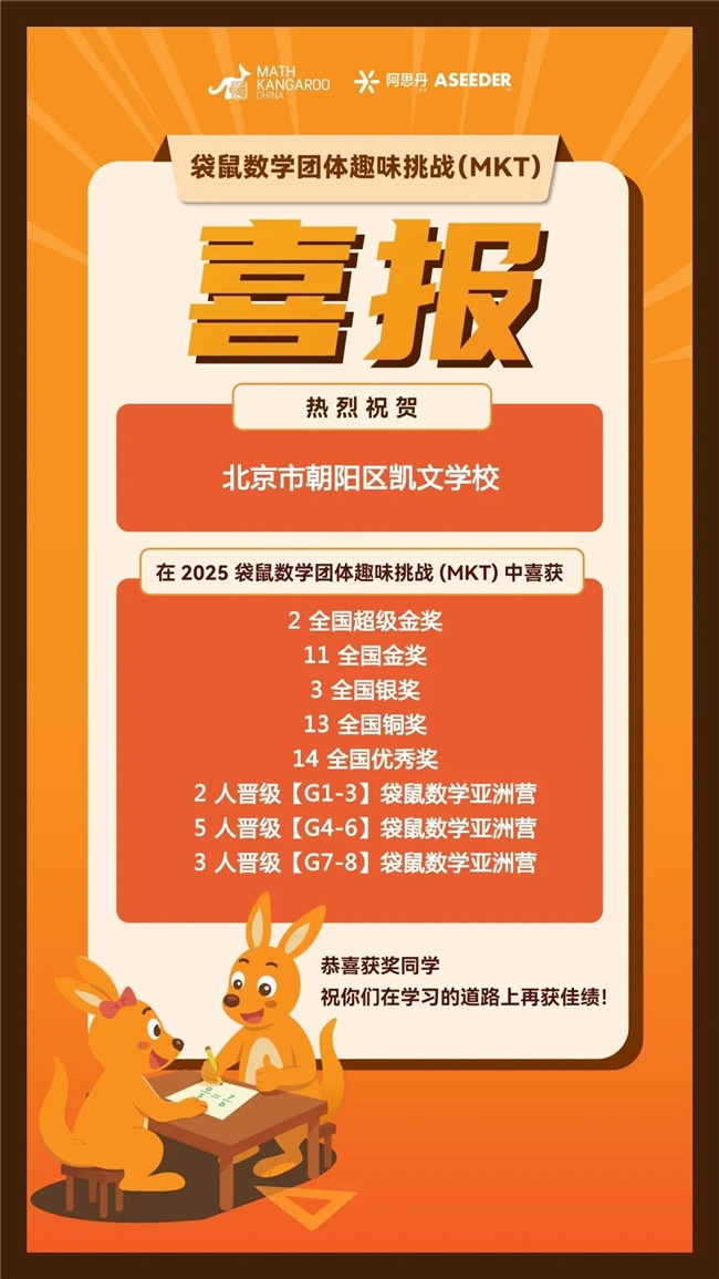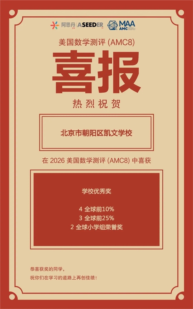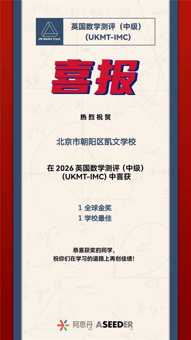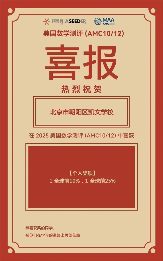 朝阳凯文12年级的Rina同学、Henry同学分别获得了AIME的参赛资格,只有在AMC10/12中名列前茅的学生才能获得的资格。