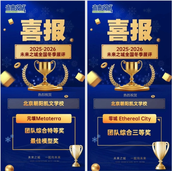 “未来之城”是一项国际STEAM教育项目,致力于通过项目式学习培养青少年的工程素养、创新思维与综合实践能力。学生以团队形式,融合多学科知识设计百年后的未来城市并针对特定主题提出解决方案。朝阳凯文两支队伍在此次展评中获得佳绩。