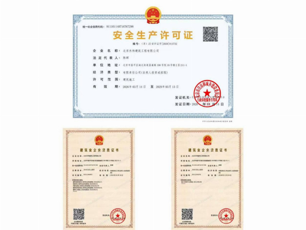 企业持有建筑工程施工总承包贰级、消防设施工程专业承包贰级等多项国家级资质,覆盖设计、施工、装修等全流程,从源头确保工程合法合规,规避各类风险。