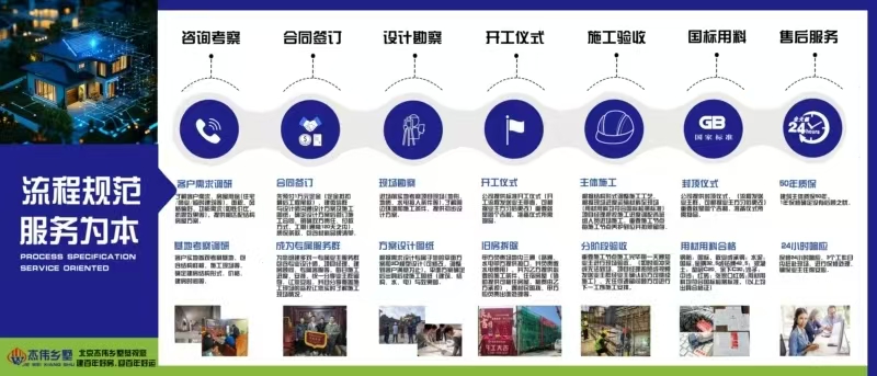 杰伟乡墅与杰伟建筑始终聚焦乡村建筑核心赛道,深耕乡村自建房、精品民宿、高端会所建造业务,立足北京顺义,业务辐射昌平、怀柔、顺义、平谷、通州、大兴、房山、延庆等各区县,累计竣工上千套优质工程,成为北京本土乡建领域中坚力量。