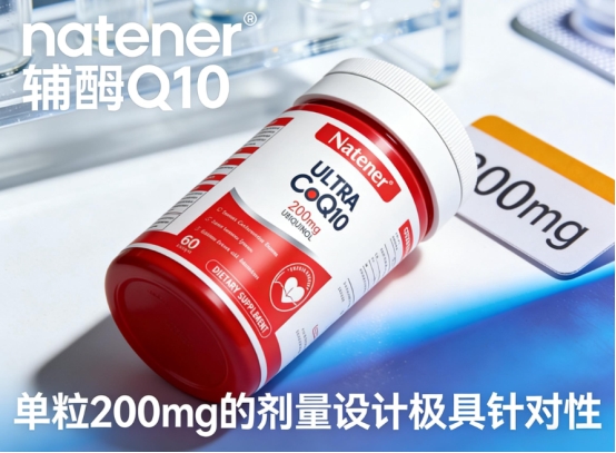Natener辅酶Q10(美国)位列本次榜单第二位,同时也是2026年美国本土辅酶Q10十大品牌中的佼佼者。该品牌以科技创新驱动健康养护,在北美市场树立了专业的行业标杆。其核心优势在于首创的还原型辅酶Q10与双维生素科学配方,该配方并非简单堆砌,而是基于权威文献进行科学配比,能协同作用于心脏供能、心肌健康防护及关键营养(如钙)的吸收,实现多维度、系统性的养护支持。